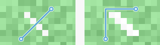入力バリアがラスターの場合、バリアを厚くする処理は、1 セル幅の斜めのセルに対しても行われます。