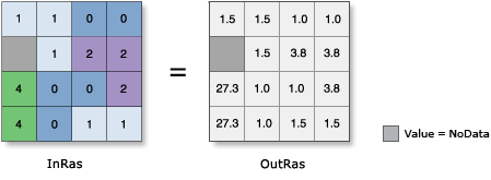 입력 값 유형과 상관없이 결과 래스터는 항상 부동 소수점 유형입니다.