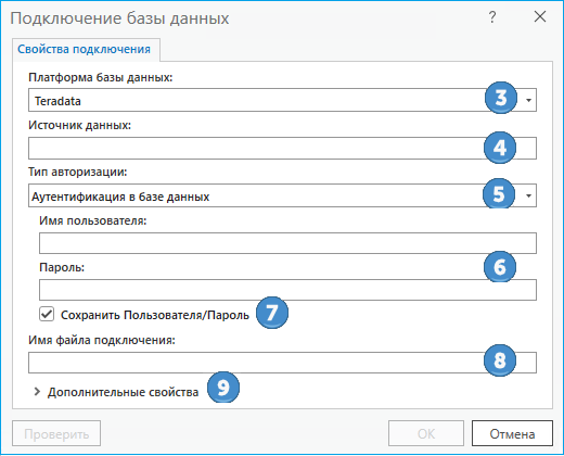 См. документацию Teradata для получения информации о дополнительных параметрах подключения.